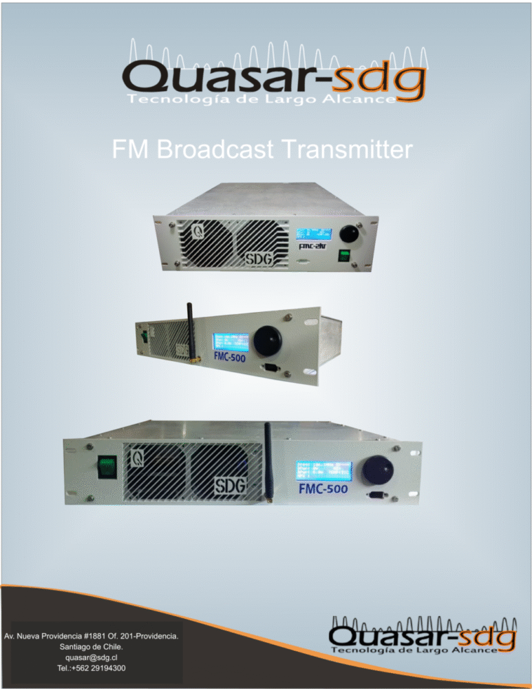 La elevada eficiencia nos ha permitido trabajar con gabinetes compactos y livianos, lo que disminuye considerablemente costo por traslados e instalación. Posee un excitador de FM-digital, cuya lógica de control microprocesado dota a los transmisoras de esta serie de autonomía y selectividad en el control de alarmas, pudiendo reducir potencia ante aumento de condiciones adversas como alto ROE, Sobre-Temperatura, entre otros. Adicionalmente se ha incorporado un sistema de *telemetría y control, el que ademas de controlar el encendido/apagado, permite conocer los parámetros del transmisor y realizar cambios en la potencia final de salida. Pensando en el ahorro enérgico, se ha dispuesto de una entrada de tensión continua (45-56Vdc), pudiendo energizar el transmisor mediante fuentes de energías renovables no convencionales (ERNC) eólica/ o solar.